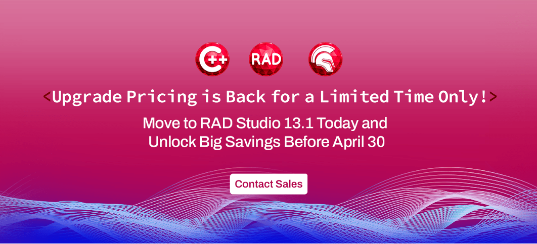 Yükseltmeye kapalı ve desteği sona ermiş eski sürümlerden geçiş için normal yükseltme fiyatlandırması kısa bir süre için geçerli! Önceki sürümünüzden RAD Studio 13.1 Florence sürümüne geçiş yapın ve güncel teknolojilere çok daha kolay bir şekilde ulaşın.